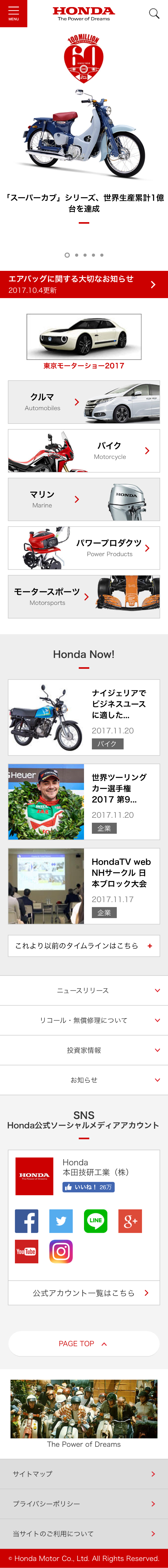 「HONDA」のスマートフォンサイトです。