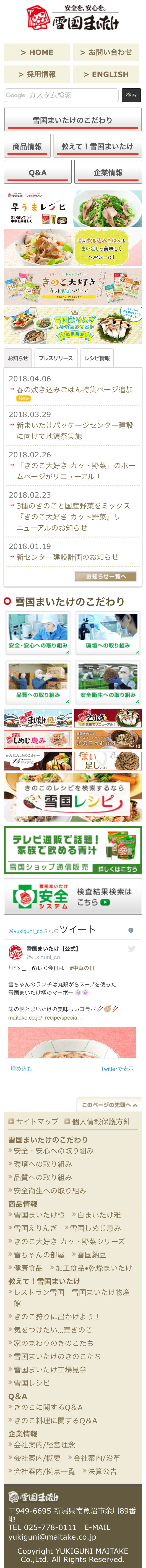 「雪国まいたけ」のスマホサイトです。