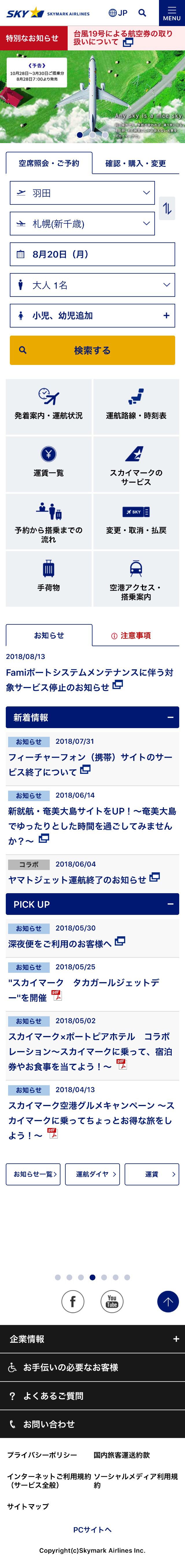 PCサイト → http://www.skymark.co.jp/ja/ スマホサイト → http://smart.skymark.jp/ja/